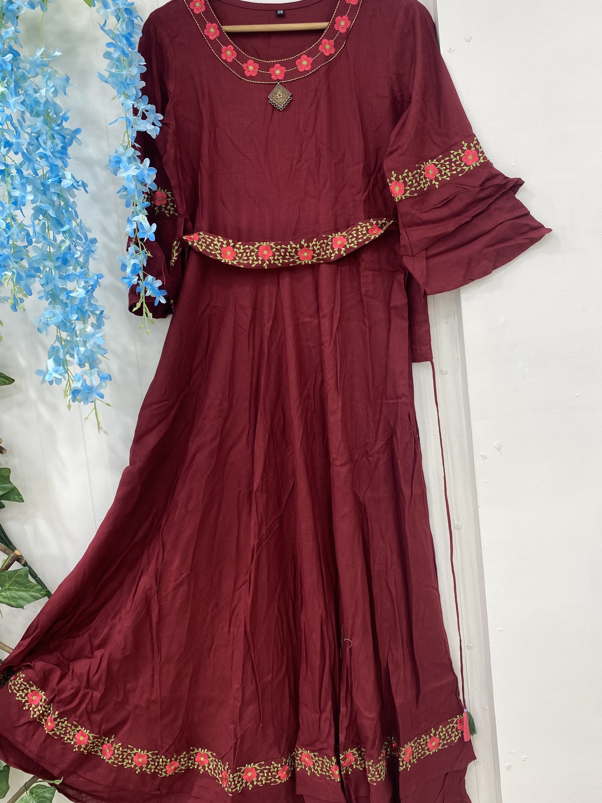 Maroon Long Frock Style Kurti