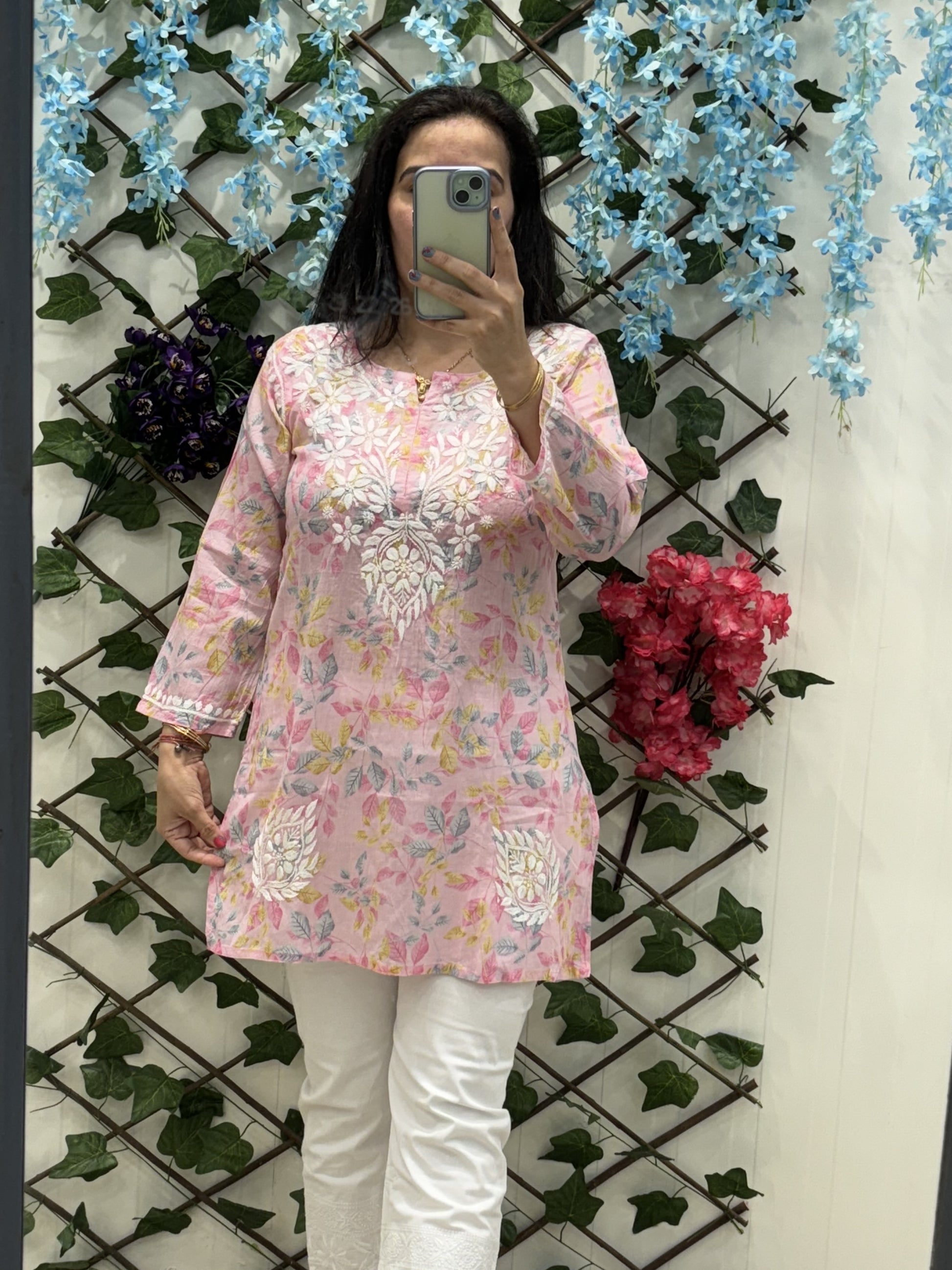 Pink Cotton Chikankari Kurti